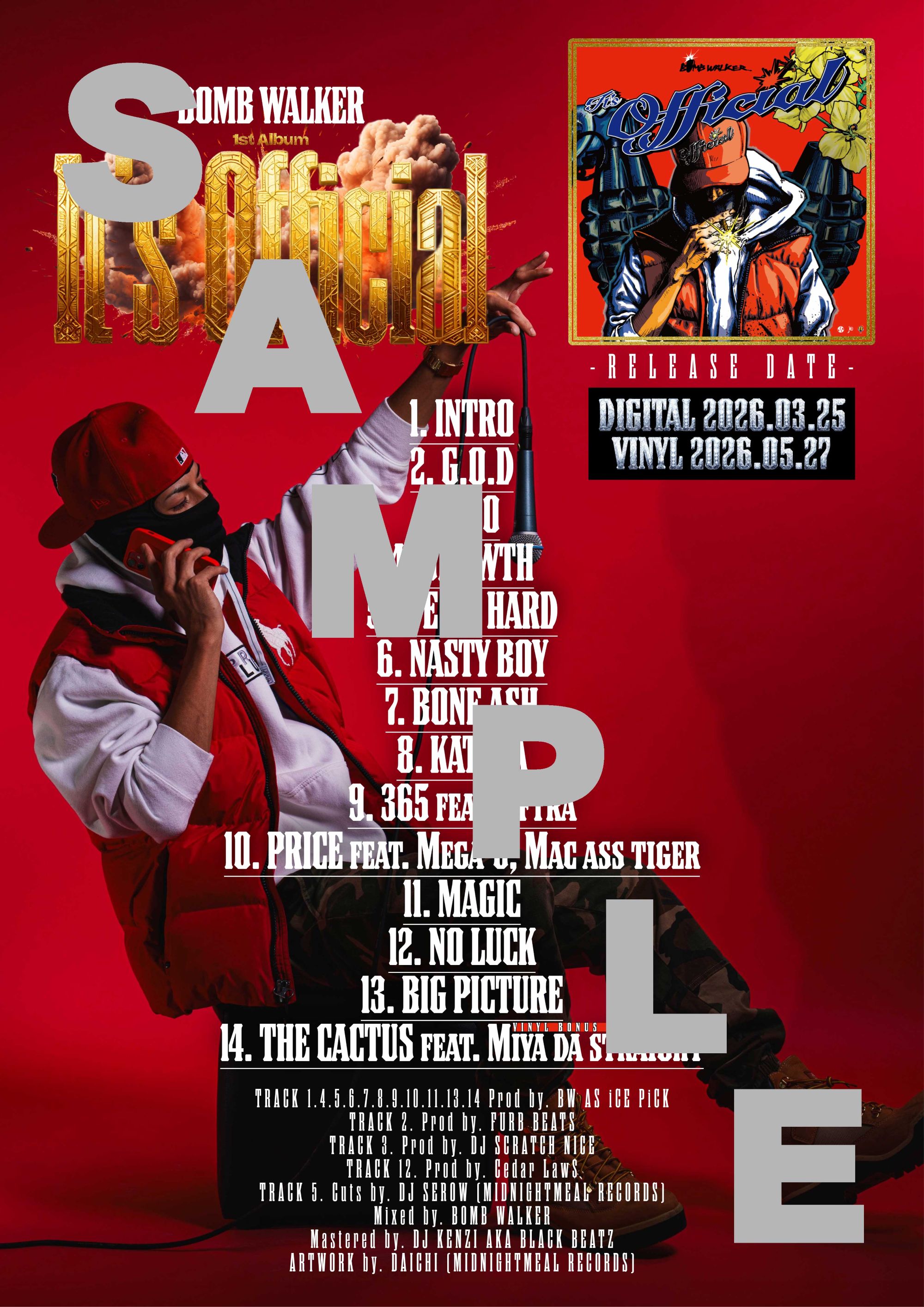 - MASS-HOLE、DUSTY HUSKYらとの共作でHIP HOPの真髄となるような作品リリースを重ねてきたラッパー“BOMB WALKER”の1st Albumが待望のLP化!MEGA-G、DJ SCRATCH NICEらが参加。